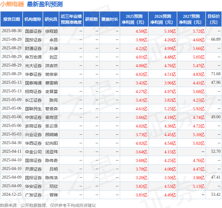 太平洋证券股份有限公司孟昕,赵梦菲,金桐羽近期对小熊电器(002959)进行研究并发布了研究报告《小熊电器:2025Q2盈利能力提升显著,个护与海外业务表现亮眼》,给予小熊电器买入评级。